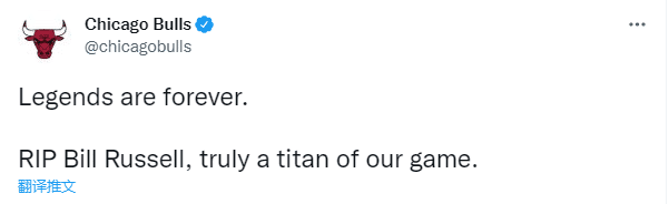公牛官方缅怀拉塞尔,发推写道:传奇永存。逝者安息,你是我们篮球运动的巨人。