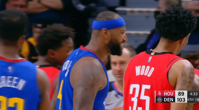 末节,考辛斯继续留在场上,双手暴扣得分突破30+,考神打开心了,主动过去拉起泰特,满脸笑容;下场时全场为他欢呼,最终掘金轻取火箭,考辛斯得分创赛季新高,也是个人生涯近4年得分新高(2018年1月22日后得分新高);考神成为掘金福星,为掘金出战12场,拿到11胜1负的骄人战绩。