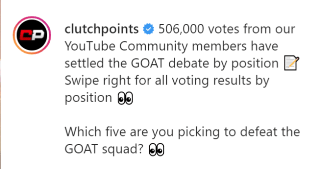 这项投票是分各个位置来进行。魔术师约翰逊得到了12万投票中的51%,乔丹得到了10.3万投票中的77%,詹姆斯得到了10.8万投票中的74%,邓肯得到了8万投票中的80%,而贾巴尔得到了9.5万投票中的50%。从得票比例来看,争议最小的位置是大前锋邓肯,乔丹和詹姆斯也都拿到了所在位置七成以上的票数。控卫和中锋,成为较有争议的位置。魔术师拿到51%的票数,贾巴尔拿到50%的票数。