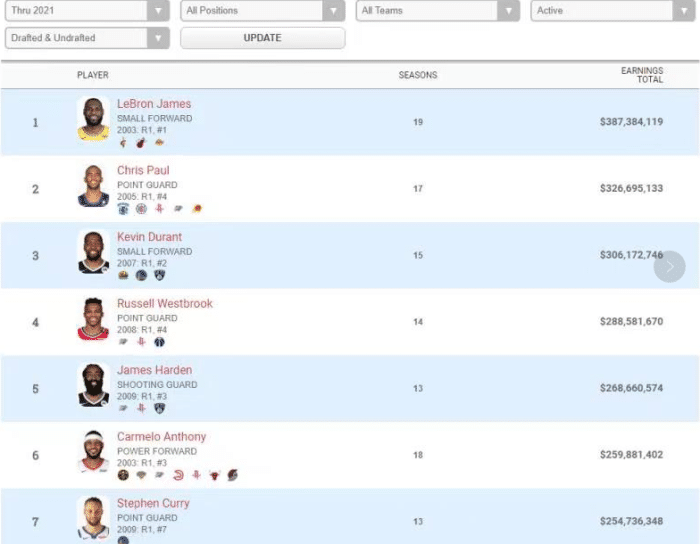 生涯狂赚4.5亿,历史只比詹姆斯少,没有总冠军的保罗仍是赢家?