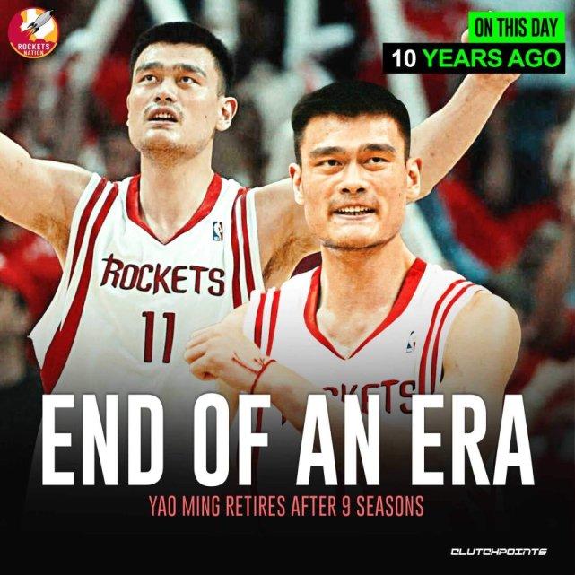 铭记姚明贡献的还有美国的火箭球迷。美媒clutchpoints的火箭球迷网也晒出海报,写着“10年前的今天,在效力NBA9个赛季后,姚明宣布退役,标志着一个时代的终结。”