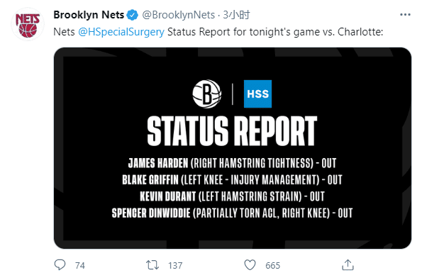 上一场对阵火箭,哈登首发出战27分钟贡献17分8篮板6助攻,腿筋受伤被迫提前退出比赛;今天篮网背靠背作战,哈登腿筋伤势缺席比赛;哈登伤势无大碍,预计“打工人”哈登只能歇几场便又要回到工作岗位,要不是意外受伤,恐怕他很难获得休息。