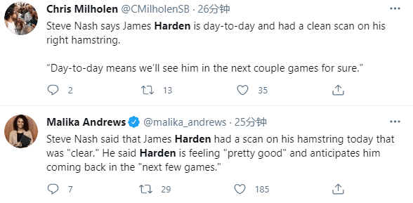哈登检查结果曝光!杜兰特透露腿筋伤愈很好,就不当言论正式公开道歉