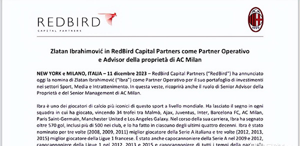 官方:AC米兰宣布42岁的伊布再次回归 担任俱乐部老板顾问