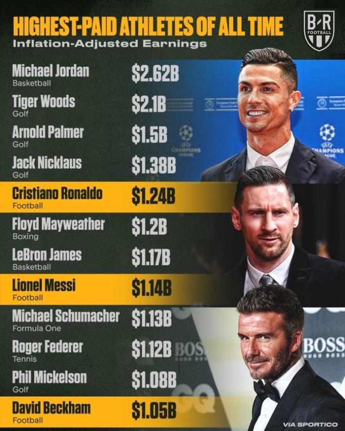 体坛历史收入排行榜:乔丹第一,梅罗上榜