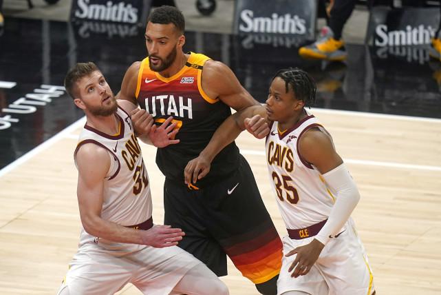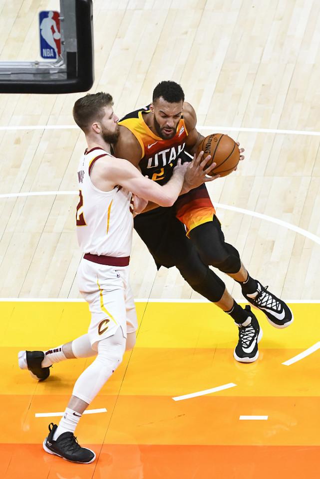 其实戈贝尔对于爵士的作用显而易见,尤其是在防守端,数据也证明了一点。在全明星之后的比赛中,当戈贝尔在场时,爵士防守效率(每百回合失分)98.2,净效率18.5。而当他下场时,爵士防守效率则降至120.8,净效率-6.8。